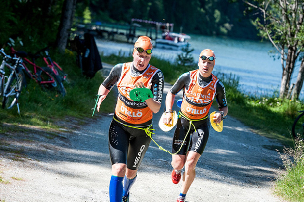 Earlier that day Pontus Lindberg and Georg Bjälkemo looked very relaxed at the start, and they had opted to run uphill with their wetsuit tops pulled down. But you will notice most other teams around them had their tops up.