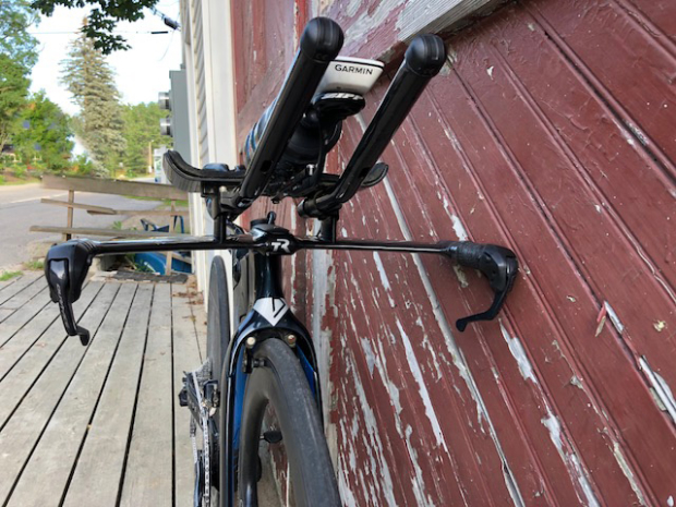 Lambi has a TriRig Aerobar up front with a Zipp Vuka BTA with an extender. "I use the TriRig aerobar mostly because it offers tilt, which for whatever reason is rare amongst aerobar offerings. Still, it's an a very clean and aero bar with a lot of adjustability. I like that it houses the Di2 junction box, and it mates to the Dimond fork pretty well," added Lambi.
