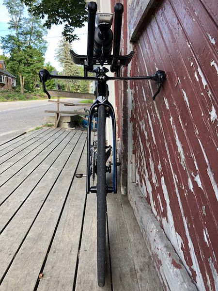 Lambi is 39 years old, 5'5" tall and weighs 130 pounds. His typical half IM speed is around 2:20 and he averages around 190 watts on a flat course. The frame size is XS.