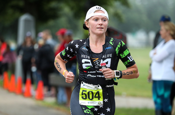 Without a swim to spread out the front of the field, the racing was tight on both the men's and women's side. Lindsey Wolfe was amongst those in the hunt for the podium.