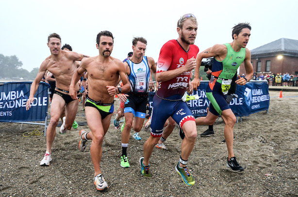 Boston puts up a prize purse for pros. Not enough to draw in the biggest names in non-draft racing – though Olympian Ben Kanute was in the field – but all of the top talent in New England toe the line. With potentially hazardous conditions forcing a swim cancellation this year, the race started with a short but challenging run on the beach.
