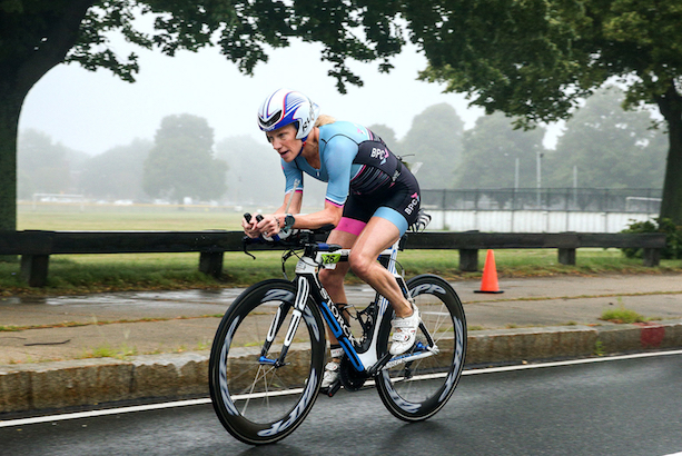 Kim Webster was at the pointy end of the field in the women's elite division. While female participation is hovering at 37% in USA Triathlon races, Boston is closer to 50% of the field. O'Neil deliberately positions Boston Tri as an inviting race to women. What does that mean? The race hosts social runs at health clubs, local bike and run shops and urges group training.