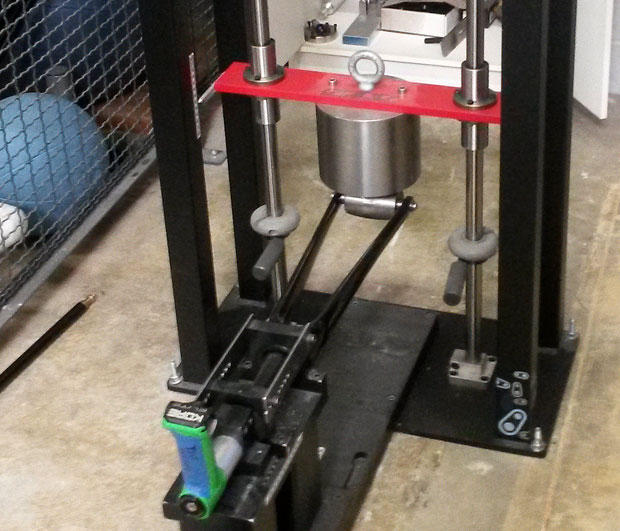 Below is another machine from Felt, and when I first saw it I had to smile. Felt has its own Guillotine, in this particular instance testing a fork to failure.