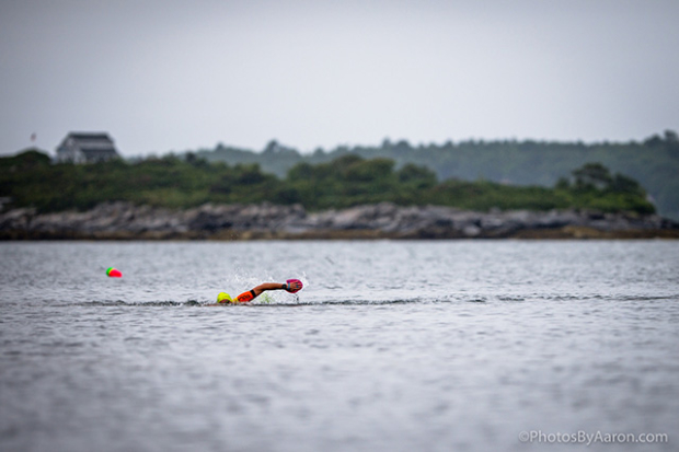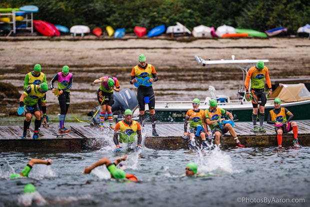 The Long Course took athletes from the exclusive private property of Diamond Cove through Great Diamond Island and down to Little Diamond where athletes had the option to leap off the 15 foot high ferry dock or run down to the boat slip dock. And many took the leap.