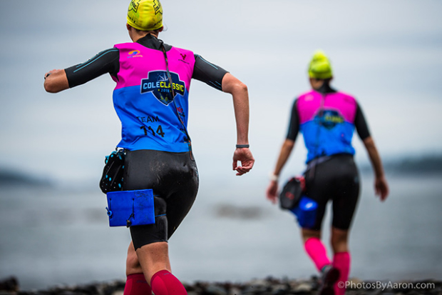After a week of sizzling temps, race day was cool and overcast with a light drizzle, perfect conditions for SwimRun. Some teams even opted for extra warmth with a neoprene cap.