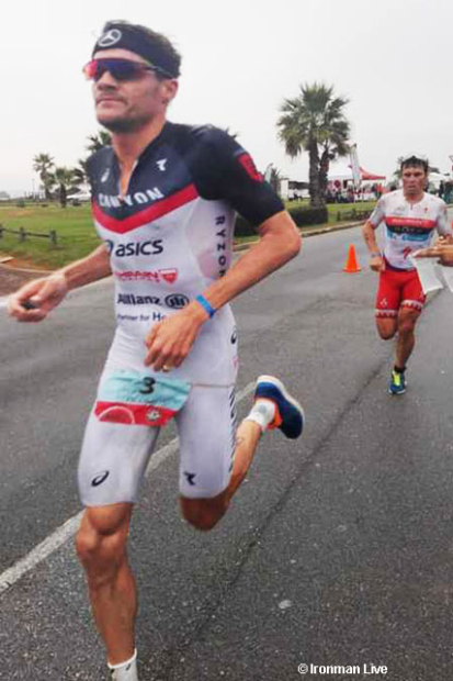 Appleton, after a 2:04:21 bike split, led into T2 followed closely by a swarm that included Brownlee, Frodeno, Gomez, Heemeryck and Kanute. Exiting T2, Frodeno, Appleton and Brownlee ran to a quick lead. Within a hundred meters, Brownlee accelerated past Appleton and ran up to and past Frodeno. Appleton faded 40 meters back, soon passed by Gomez.