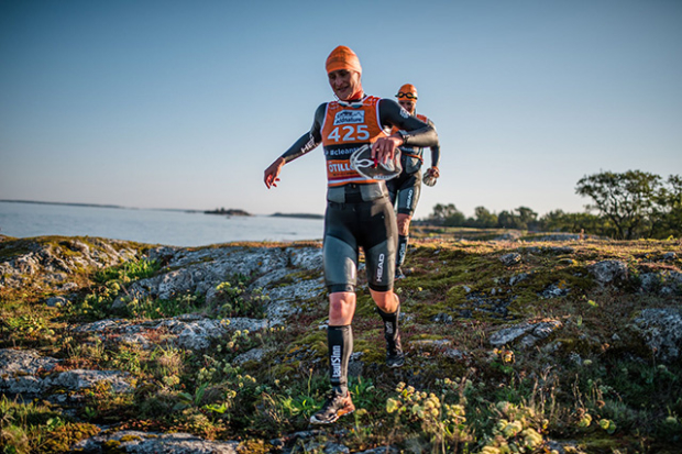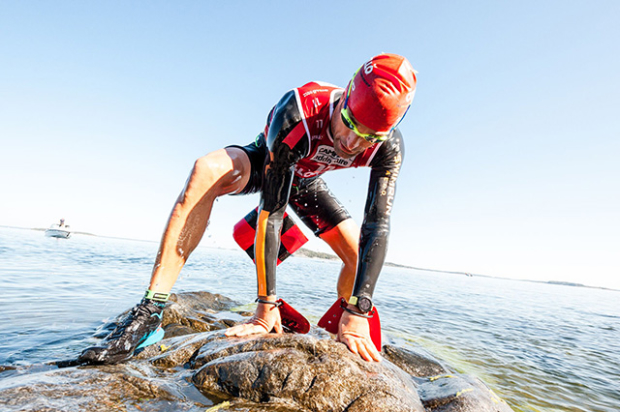 The famous Swedish rapper Petter in action during the 2018 ÖtillÖ Swimrun World Champions with his mixed team partner Therese Alshammar – a Swedish swimmer with 3 Olympic medals to her name.