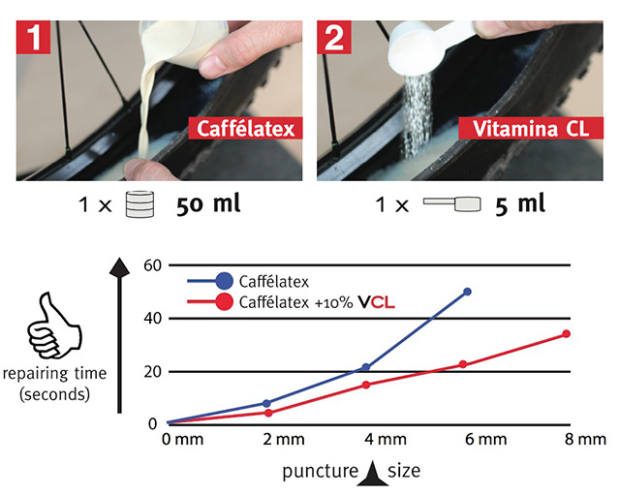Effetto Mariposa also has an interesting twist that they’ve added to the line – Vitamina CL powder. For higher-risk riding, you can add this to their standard Caffelatex sealant, and they claim it reduces sealing time and seals larger size punctures.
