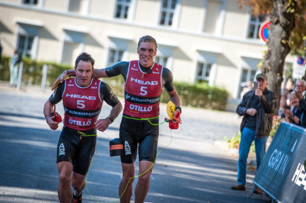 World Champions Fredrik Axegård and Alex Flores here led Knut Baadshaug and Carson Christen out of the water during one of the 10 swims.