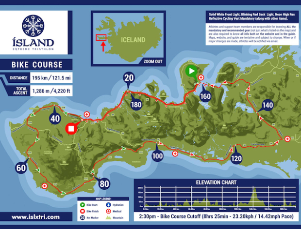 The bike will feature rolling hills and takes athletes around the perimeter of the Snæfellsjökull National Park with massive glaciers as well as lava fields and lava tubes on display.