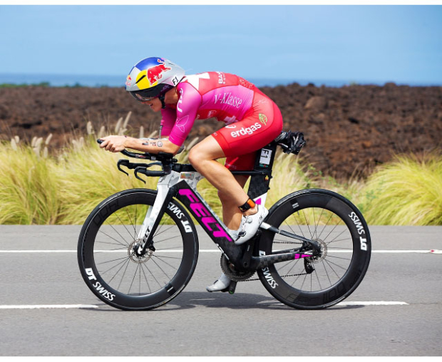 Both the mono pedestal and the folding pursuit bar (like a plane on an aircraft carrier, just, these “wings” fold down) are great ideas, both when the P5X was unveiled in Kona and now with this bike. This bike’s mono-pedestal has 115mm of rise to it, and here’s another trend with Canyon’s Speedmaxes, the P5X and now this bike: low-slung front ends that are able to pedestal quite high. When you do offer this much pedestaling you’ve got to offer multiple pursuit bar heights and this bike has 3.