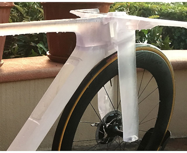 What I’d rather have seen was the aero section sit behind the steering axis (or more behind), or at least to have seen that modeled, to see if it counteracted the torque on the steering when you’re hit with a side wind. But this would clash with a frame design element, which is the continuation of that blade all the way up to the pursuit bar. If you extend that blade further back than it is then the back of the blade hits the frame when you turn the handlebar. Couldn’t you hog out some of the trailing edge of that blade as it gets above the crown area so that you get more clearance for turning? I’m sympathetic to Specialized. They’ve done a really nice job with this bike and they don’t need me asking for more and more testing on unproven notions. Maybe after I ride this bike I’ll stand down and acknowledge that what I’m asking for is not needed.