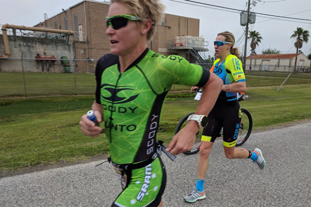Chura started off with a women’s 5th-best 2:20:09 bike split that put her 1:26 behind leader Cecilia Davis-Hayes, 1:11 behind Alicia Kaye and 56 seconds behind Lauren Brandon, who surrendered her ace in the hole when the swim was canceled.