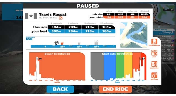 Mileage – The distance you’ve ridden in Zwift during this ride.