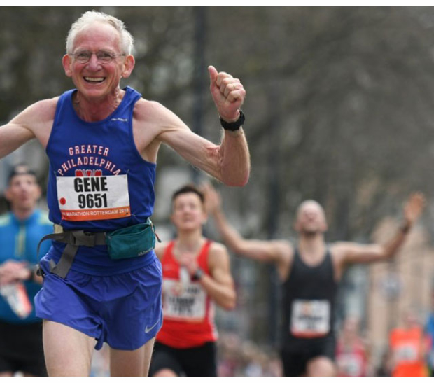 Gene Dykes runs pretty fast. He ran in college, but most of his all-time PRs came after college. Well after college. Earlier this year he ran 39:02 for 10k, his all-time PR. This summer Gene ran 1:26:34 for the half, and expects to set a new PR this month. Last month he set his PR for the marathon, at 2:55:17.