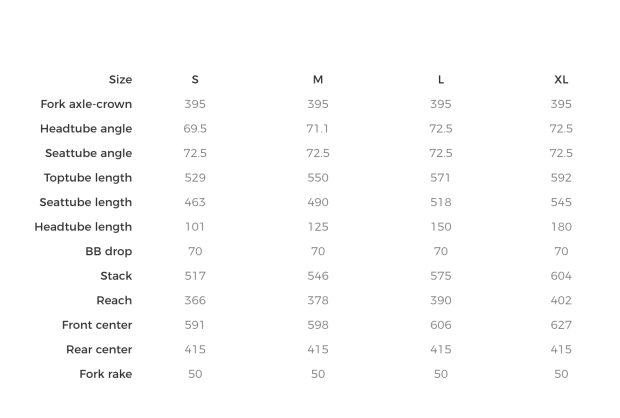 I've got two different gravel bikes. And I enjoy riding each of them. Each of these bikes has a distinct "feature," but what really separates them is their front end geometry. In each case, I'll reference the geometry of my size. To a certain extent, you can tweak how a bike handles by sizing up or down.
