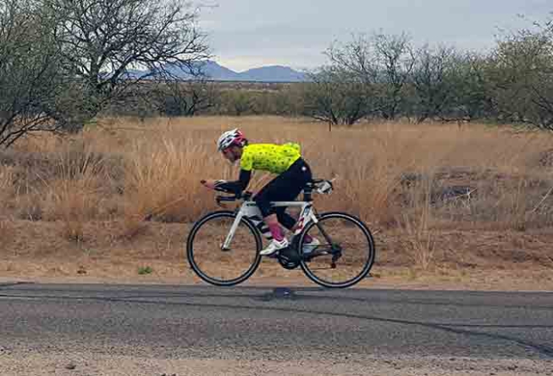 Christine: Yes, I do outdoor rides on the weekend and sometimes during the week. Part of the reason we moved to Tucson from the East coast, outside of just wanting a neat life experience, was to take advantage of the amazing riding. I absolutely love to ride Mt. Lemmon, Kit Peak, Madera Canyon, Mt. Graham, etc as it seems as though the options are endless for tough mountain rides. There is also plenty of flattish aero bar riding. In general drivers are very courteous in Tucson and the infrastructure of the city really supports safe bike riding as a commuter, hobbyist, or enthusiast. This past season I also started participating in one of Tucson’s famous group rides: the Tuesday shootout, which was a great way for me to gain some fitness, confidence, and bike handling skills. There were times I thought I would have to pull off to the side of the road to get sick because I was riding so hard just to stay on wheels. I know group riding is intimidating, but I highly recommend it to any triathlete who has a road bike and is looking to advance bike fitness and skills.