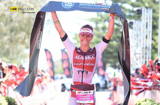 In her first Ironman in three years, Caroline Steffen of Switzerland smashed the women's field and broke the course record with an 8:49:46 win at Busselton. Steffen combined a women’s race-best 53:54 swim, a women's race-best 4:44:52 bike split and a women’s second-fastest 3:06:14 marathon to finish with an 18:43 margin of victory over Barbara Riveros of Chile and 25:51 over 3rd place Dimity-Lee Duke of Australia.