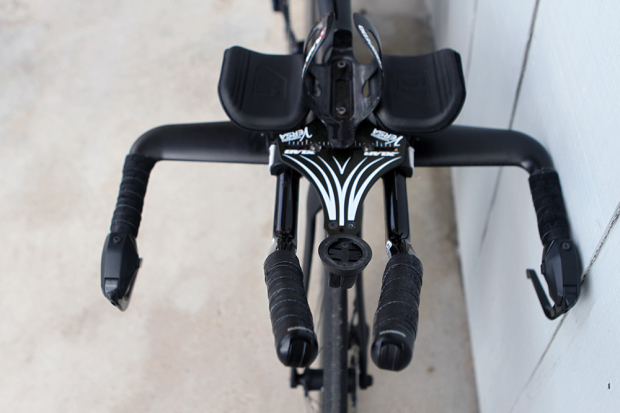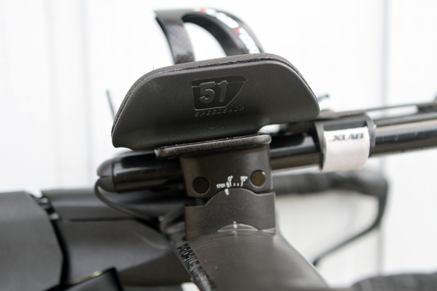 Joe Gambles has 51 Speedshop Ultimate extensions on his QR PRsix and also has the 51 Speedshop arm cups in place. The XLab Versa 500 BTA bottle cage setup allows him to stay aero.