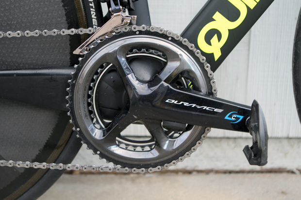 Joe Gambles rides 165mm Shimano Dura-Ace cranks with a Stages LR power meter and 55-39 rings.
