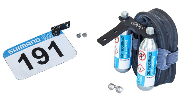 The threaded mount at the back of the saddle is compatible with several different accessories from PRO. They have a camera mount, a rear fender, a race number holder, and a spare tube / CO2 holder.