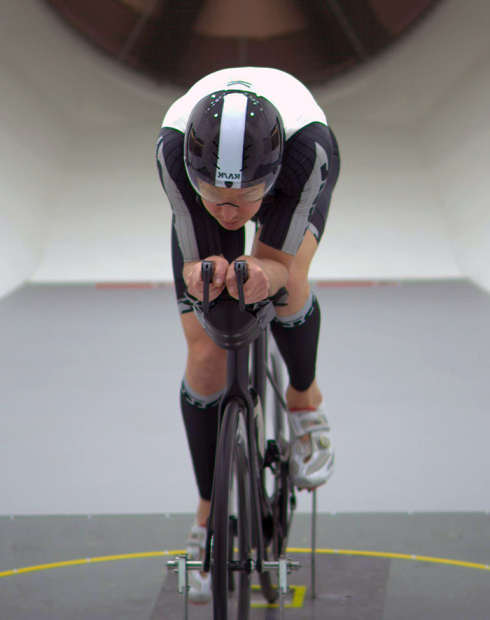 The best CdA number of .182 was in full setup with this Kask Mistral helmet, but that was only slightly better than the Louis Garneau helmet he owns, and without the rear Roval disc wheel that had not yet arrived. The suit pictured is a Bioracer Speedwear Concept trisuit, but he will get a custom one soon. The LG TR-400 shoes will also likely soon be replaced.