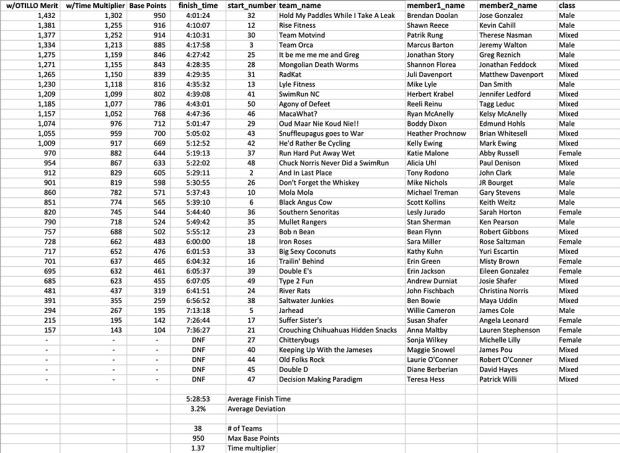 For 2019, Marc Blake at Pacific Multisports will collect results and publish rankings more frequently throughout the year. To showcase what the rankings will look like, Blake compiled results following the Lake James event, an ÖTILLÖ merit event receiving bonus points.