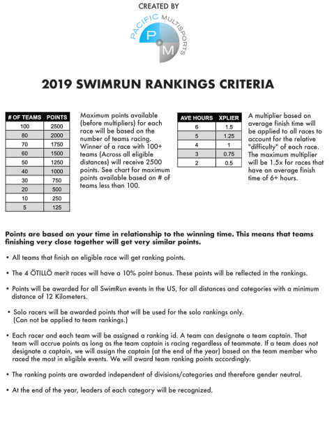 2019 SwimRun ranking update and calendar