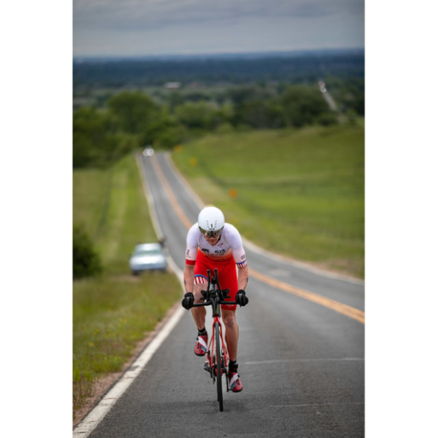 Matt Hanson attacks a long climb on his way to a 2nd-fastest 4:09:17 bike split.