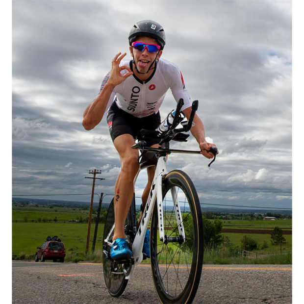 Boulder resident Sam Long was disappointed with his energy but still managed the day’s fastest bike split – 4:08:44 – on his way to 5th place.
