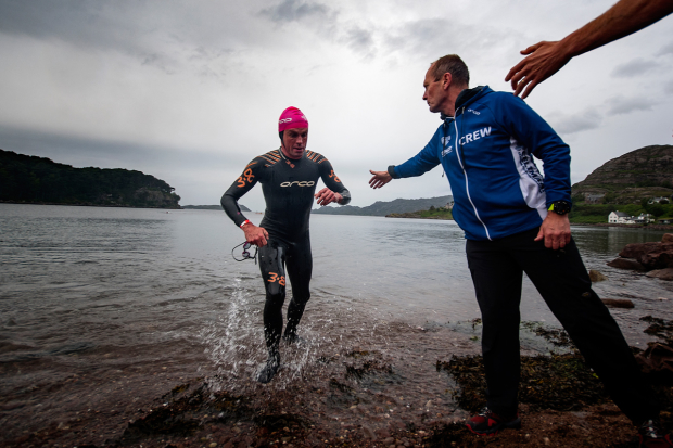 Determined athletes from all over the world swam 3.4 km in the cold Loch Shieldaig, rode 202 km on gritty Highland roads and then tackled very hilly hilly 42 km of running. The water temperature was around 11 degrees Celsius (52 F) and the air temperature had an average of 18 degrees Celsius (64 F) according to race officials. But early in the day the air temperature was only 12 degrees C (54 F).