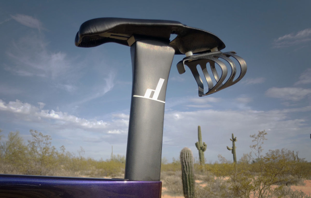 The Dash Cycles Aeropost combo with integrated cage mount looks great here and Miller uses an XLab Gorilla XT cage here.