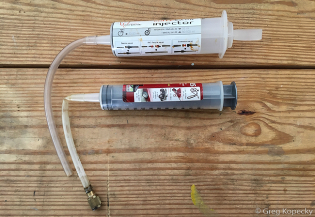 Of course, that method doesn’t work so well after you’ve already been riding the tires for a while – and you actually want to keep those beads fully sealed in place if they’re already holding well. In that case, you can use a sealant injector. Several brands make them, and they allow you to perfectly measure and inject a specific amount through a removable-core tubeless valve. Yes, you do want removable cores in your valves, and most are made this way in 2019.