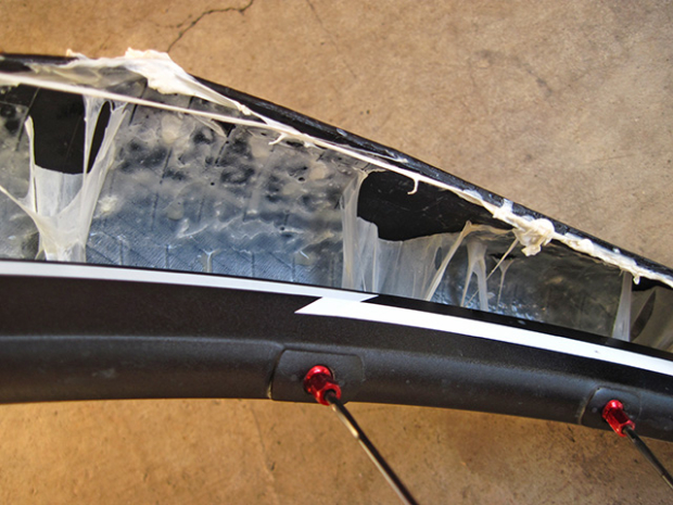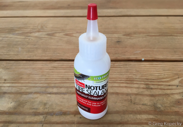 In case it isn’t obvious, you must use tire sealant with road tubeless tires – and the sealant must be tubeless-specific. Tubeless sealants are latex-based, compared to tube-type sealants that are typically glycol-based. The downside to latex sealant is that it dries out over time, requiring replenishment (compared to glycol sealants that can often last for the life of your inner tube). Note, however, that this is a necessary evil, as the drying-out process is part of what makes it work for the application.