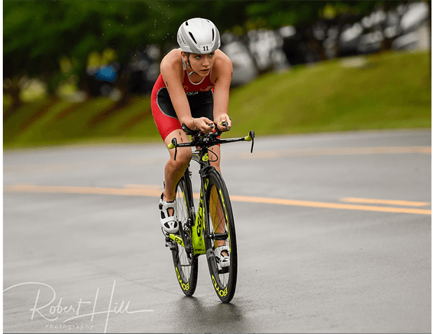 We also made sure our athletes did not feel alone on the course. In addition to our orange-shirted volunteers lining the roads, we also had two motorcyclist friends guide the leaders onto the looped bike course, and then kept circling for all of the athletes. A local bike shop provided rolling tech support. We had local boys and girls high school cross country teams volunteering and providing encouragement on the run course. We recruited the cheerleaders from the local high school to literally cheer the runners up the longest hill on the run.