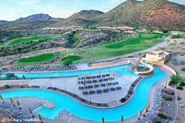 I saw a friend of mine who owns a tree service drive his bucket truck past my office window. Could I get him to hang a huge American flag over the pool off a bucket truck, and take the other truck to hang a large welcome banner over the transition area and finish line? Of course the answer was yes and the results were memorable.