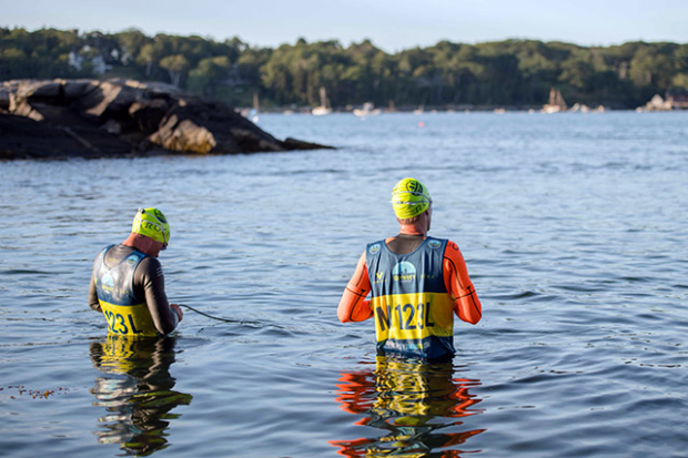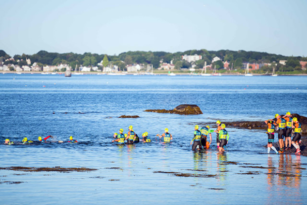 After a 1400 yard swim crossing from Cow to Long Island is the unique Vaill Island circumnavigation. A spectator ferry managed by the Casco Bay Lines traces the course to watch racers.