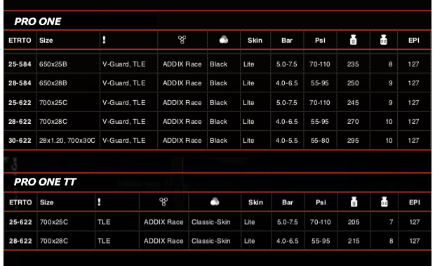 The tires will soon show up in stores, just, make sure when you buy you’re buying a new Pro One or Pro One TT. There’s a cosmetic treatment to these wheels, which you can see in the images here. There is no new model name or name change. The tires are $81 each, for either the Pro One or the Pro One TT. That’s on the mid-to-hi side, as clincher tires go, but not in this tire class: Continental's 5000 TL costs about the same. Also, remember that you don’t need to spend on the tube, and a latex tube is between $10 and $20 depending on how desperate you are at the point of need.