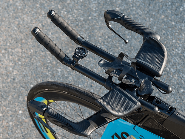 The pads are not high versus her saddle. The pads need to be high because her saddle is high because her legs are so long: While I’m 10cm taller than she is, her saddle is 4cm taller than mine. She’s got a decent amount of armrest drop from saddle to pads, maybe 135mm. The P3X has a crazy amount of adjustability, rivaling or surpassing Trek’s Speed Concept, which has always been the most adjustable superbike prior to the P5X (and now P3X).