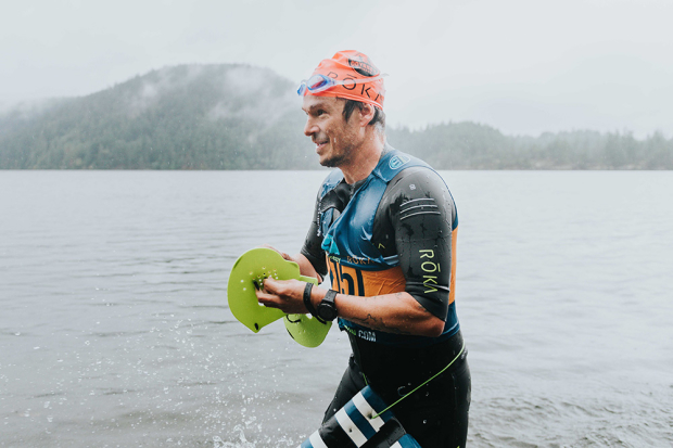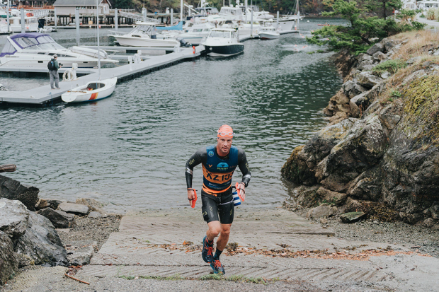 The coldest swim was in the bay and water temp there was likely around 49 degrees, but it was short and really not too bad. According to the organizers however a good reminder why the race is not going island to island and has all other swims in the lakes. Erik Zech who experienced his first SwimRun race here looked smooth and determined exiting the cold bay. Team mate Ritch Viola of Every Man Jack had already ascended the ramp.