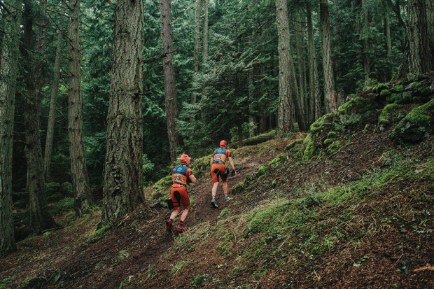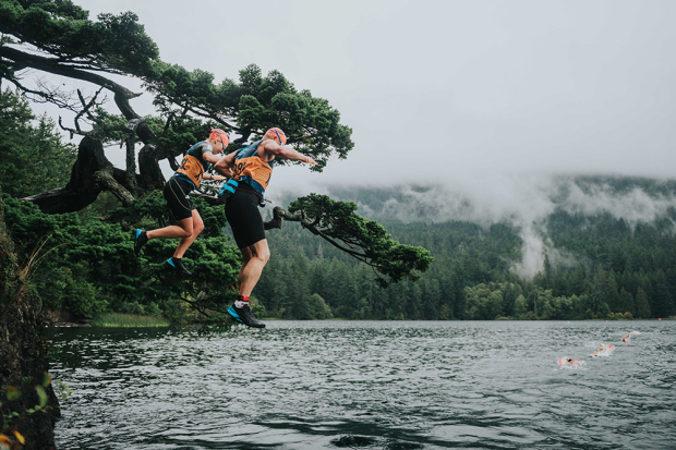 Racing as a team is very rewarding and sometimes simply fun. This cliff jump in the race was not very high but proved to be entertaining. But there was an option to bypass this jump. Charles Kostyk and Justin Rempel however were all in.