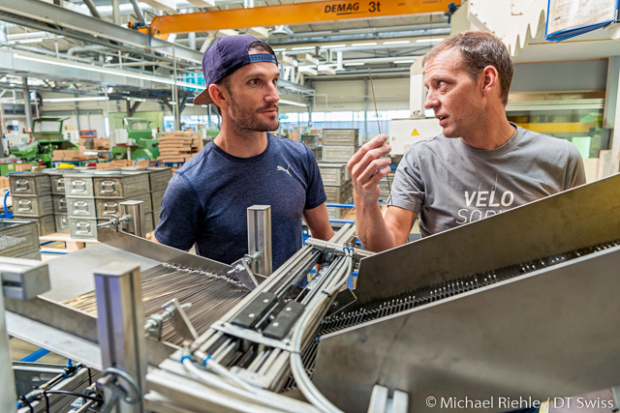 “My visit to DT Swiss was something epic, seeing how the wheels are built was something I’ve always wanted to see,” recalled Murray. “The spokes are made from large spools of wire in-house, along with where my wheels are hand built by 10 people working full time… [they] do not hold back on the fine detail. The logos are hand applied by water transfer, [and every wheel is] tested and spoke tension checked…[it] was very cool.”