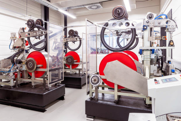 The facility consists of two main parts – the wheel building area, or BPM (Biel Performance Manufacturing), and the Performance Test Center. The majority of DT Swiss wheel building is done in Poland, with the BPM available for special needs and extra capacity for high-demand parts of the year.