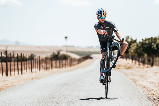 Richard travels with only one set of wheels at a time, swapping clincher tires for training (Vittoria Rubino Pro) and racing (Vittoria Open Corsa). He uses either the ARC 1100 DICUT 48 or PRC 1100 DICUT 35, depending on course profile.