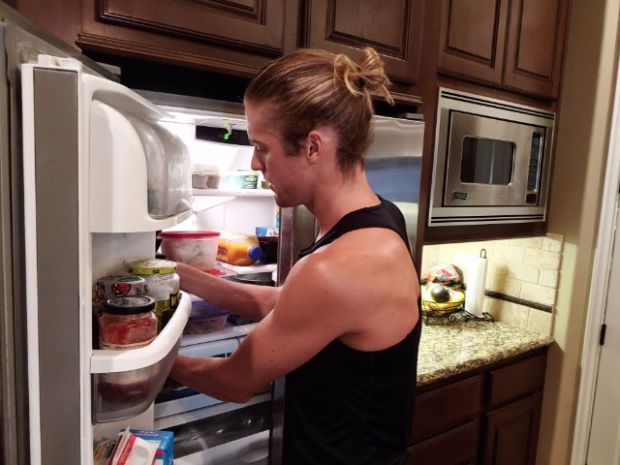 Nilsson tried a vegan diet but said it was quite difficult with all of his travel in different locations but is still a vegetarian. He prepared an almond butter sandwich and washed it down with a glass of almond milk.