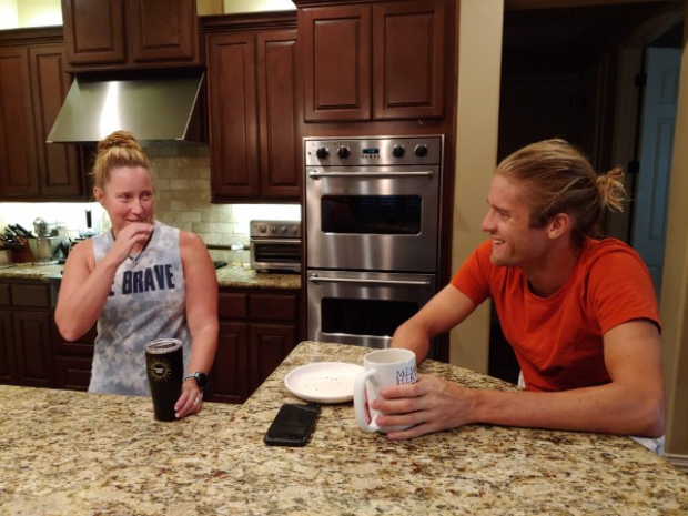 Sensing an opportunity for shenanigans, housemate Patrick Lange, messes with Nilsson's shifting, turning an easy spin into a momentary big ring mash.