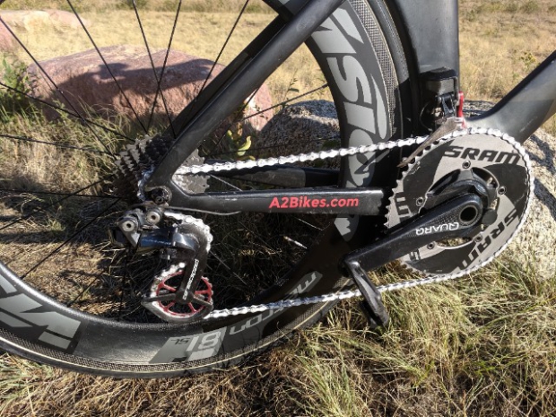 While an A2 Speed Phreak's base price point is $1900 for a complete bike, Peterson's set up is their upgraded package which includes Ceramic Speed Oversized Pulley and UFO Chain.