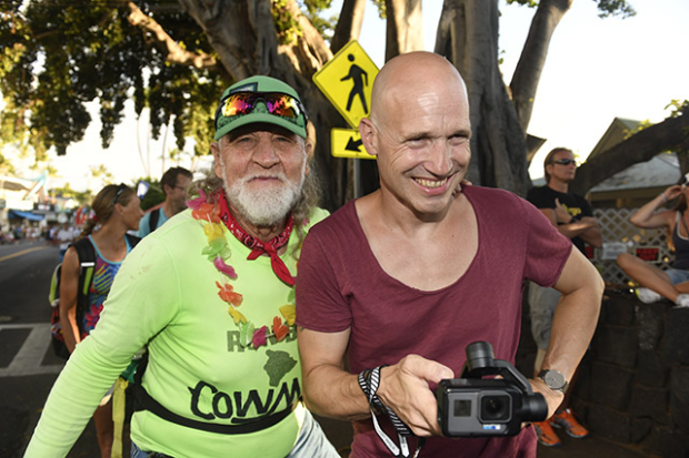 On left, 1981 Kona finisher Cowman, aka Ken Shirk.