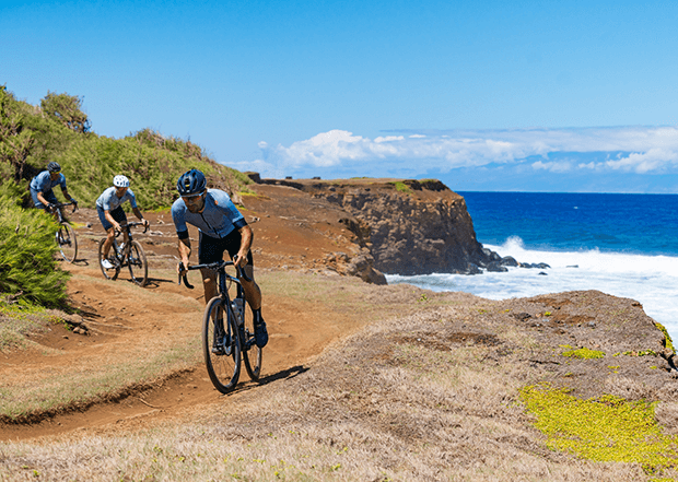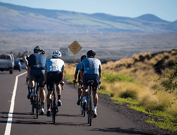 This year I went there. I and our man Lars Finanger. This image above is of the Z Trail. We'll get to that. But first, one of the groups who explore this part of the island is the ENVE crowd, hard core cyclists whose rides intimidate me. Below they're getting ready to head from Hawi (Ironman's bike course turnaround) to Waimea, which begins with a 3,000 foot climb.