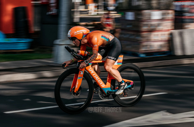 Ruth: I am very lucky in that Specialized provided the Zwift Academy team with the Shiv disc TT bike, which is so fast! I had a bike fit with Matt Bottrill so have changed the front end to have 40 degrees aerobars for a higher hand position, and his custom armrest that is all one piece. I had a 55 chain ring on the front so I could deal with the cross winds coming back from Hawi, and we were fitted with Ceramic Speed OSPW and chain in the week leading up to the race. I was running the Specialized tubeless tires which were super smooth.